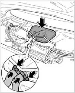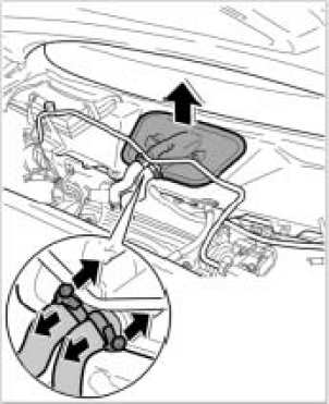 1. Release the two fastening clamps for the coolant hoses of the heat exchanger and slide them back over the hoses.