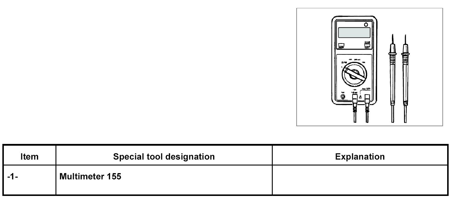 INFORMATION: Before measuring the closed-circuit current, determine the vehicle equipment (I numbers) and establish the expected closed-circuit current with the aid of the attached table.