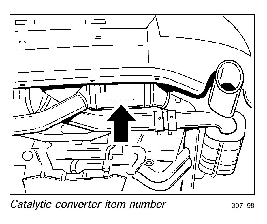 Figure 307_98 shows where the catalytic converter item number can be found on the vehicle.