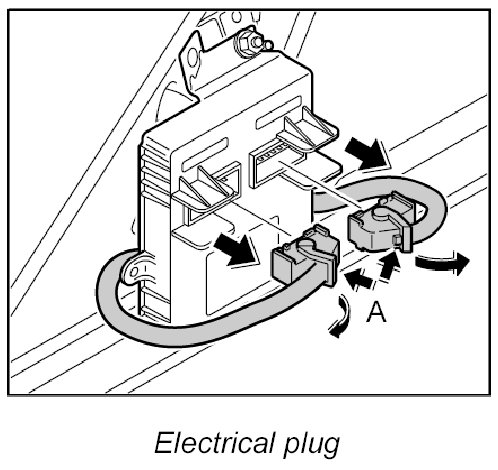 3. Release and unplug both electric connectors -A- and disengage the left and right electric lines on the control unit.