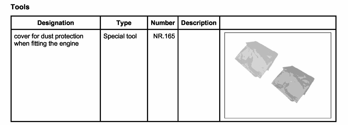 -> Use the cover for dust protection when fitting the engine NR.165 on the engine assembly support.