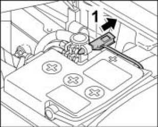 1. Pull off the B+ plug -1- for the main switch (battery disconnect switch) from the battery positive terminal.