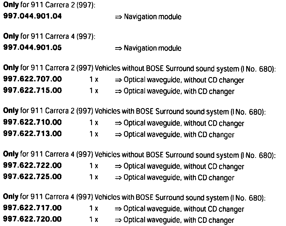 Before ordering parts (navigation module and optical waveguide), always check and consider the existing vehicle equipment.