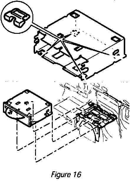 8.1.1 Fit retaining clips (997.645.342.01) on the retaining frame. -> Figure 16 and slide navigation unit into the retaining frame until the navigation unit engages securely.