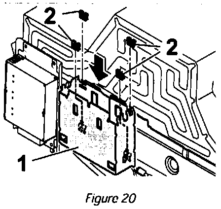 8.3.1 Slide four retaining clips (997.642.342.01) -> Figure 20 -2- onto the retaining frame for the navigation unit -> Figure 20 -1-.