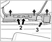 4. Unscrew fastening screws -2- and nuts -3- and carefully pull the support up and out of the retaining points.