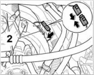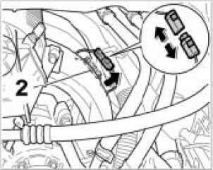 3. Lift the air-conditioning compressor with the rear fastening screw and pull out of the engine.
