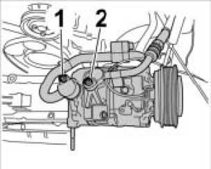 1.3 Drain the refrigerant oil from the air-conditioning compressor. The refrigerant oil must not be re-used, but must be disposed of properly.