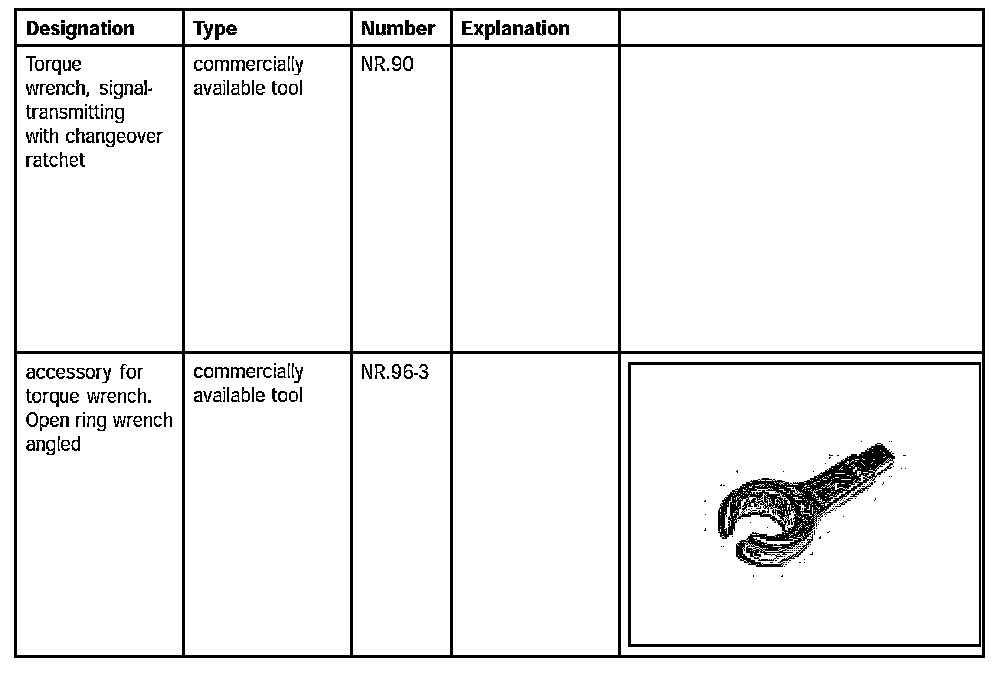 3. Tighten oxygen sensor with commercially available open ring wrench accessory for torque wrench. Open ring wrench angled NR.96-3 and torque wrench Torque wrench, signal-transmitting with change over ratchet NR.90 and tighten to the specified Tightening torque: 41 ft.lb. ± 33.5 ft.lb.