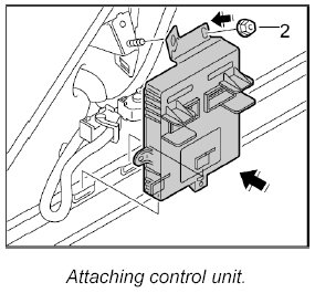4. Unscrew the fastening nuts -2-, lift up the control unit and detach it.