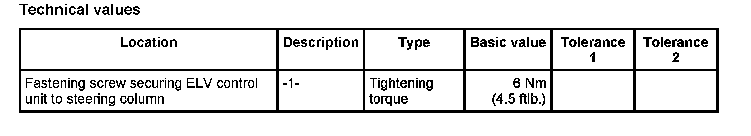 3. Unscrew the fastening screw -1- on the ELV control unit until the fastening screw -1- connects with the steering column. - Tightening torque: 6 Nm (4.5 ftlb.)