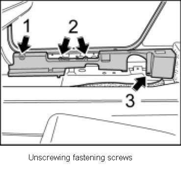 4. Unscrew fastening screws -2- and nuts -3- and carefully pull the support up and out of the retaining points.