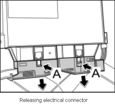 8. Press locking tabs -A- and disconnect plug connections from the control unit.