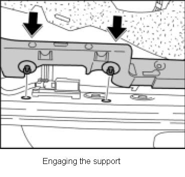 6. Push in the locating peg -1 - of the support and check it is seated correctly.