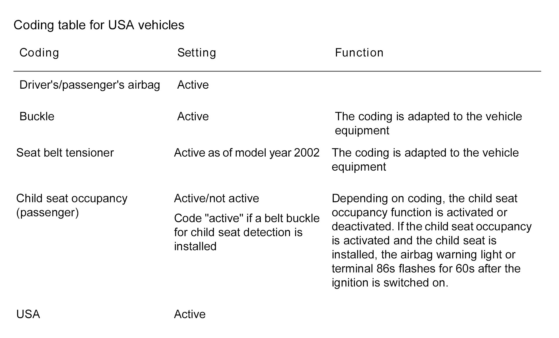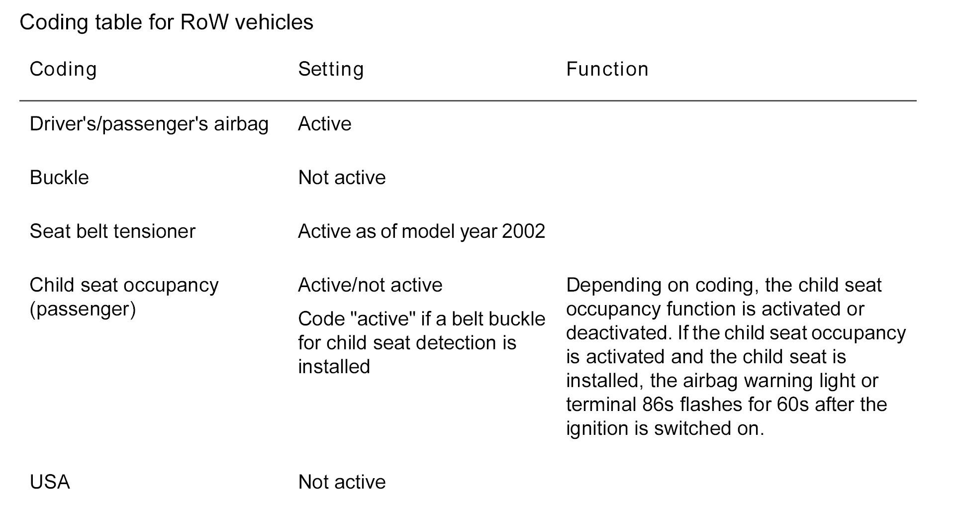 After the airbag triggering unit is replaced, the coding must be adapted to the vehicle equipment.