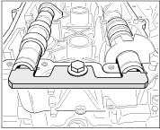 3. Screw the bearing cover screws of the inlet and exhaust camshafts and the auxiliary screw of the adjustment gauge alternately by another approximately 90° until the specified tightening torque of 10 Nm (7.5 ft. lbs.) is reached.