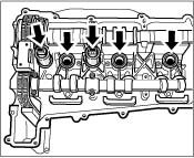 - Do not interchange the thrust bearings of the inlet and exhaust camshafts during assembly. Observe the identification (Figure shows inlet camshaft bearings).