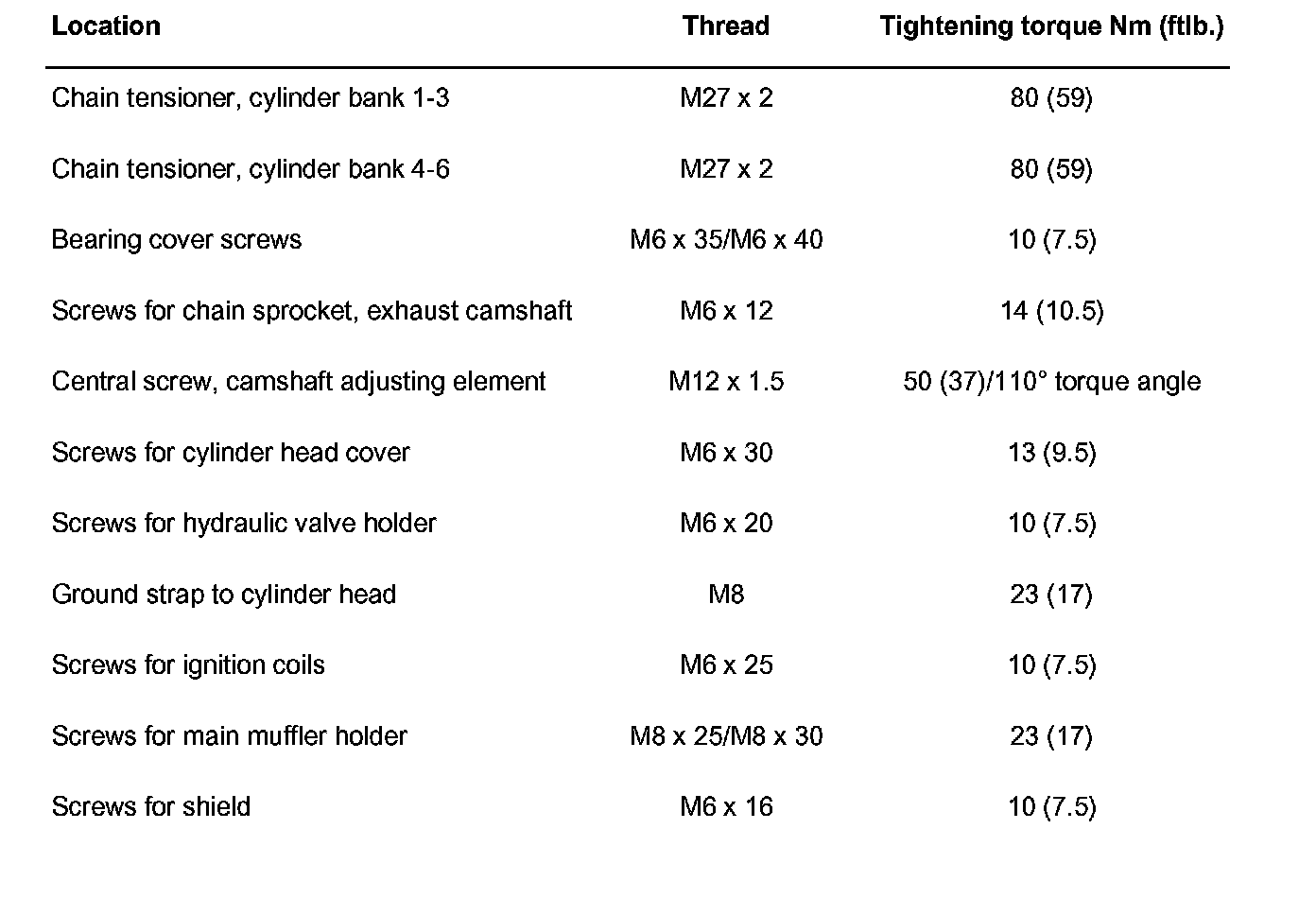First stage: pre-tightening torque: 50 Nm (37 ft. lbs.).