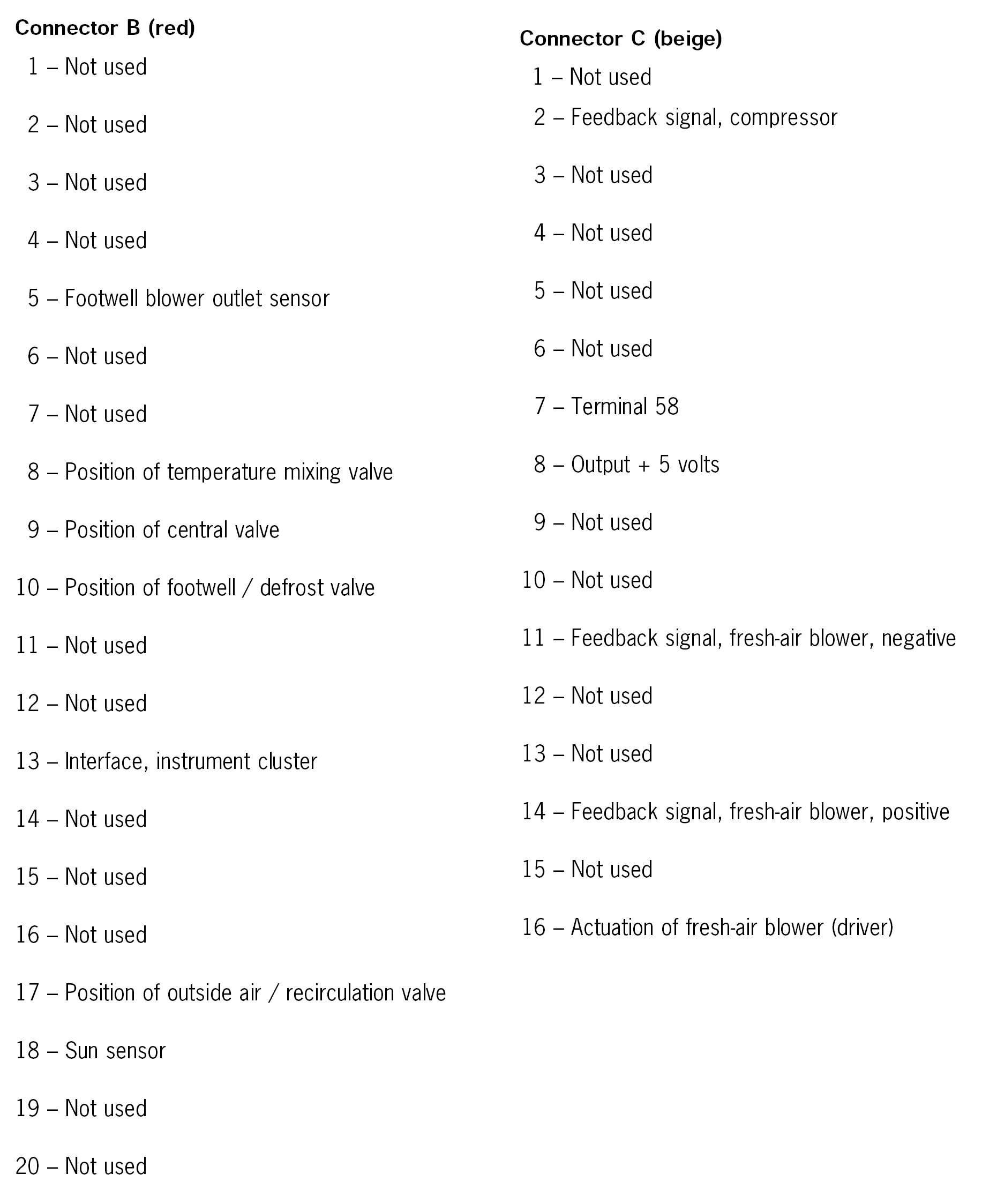 Connector Assignment, Heating/air-conditioning Control (Part 2):