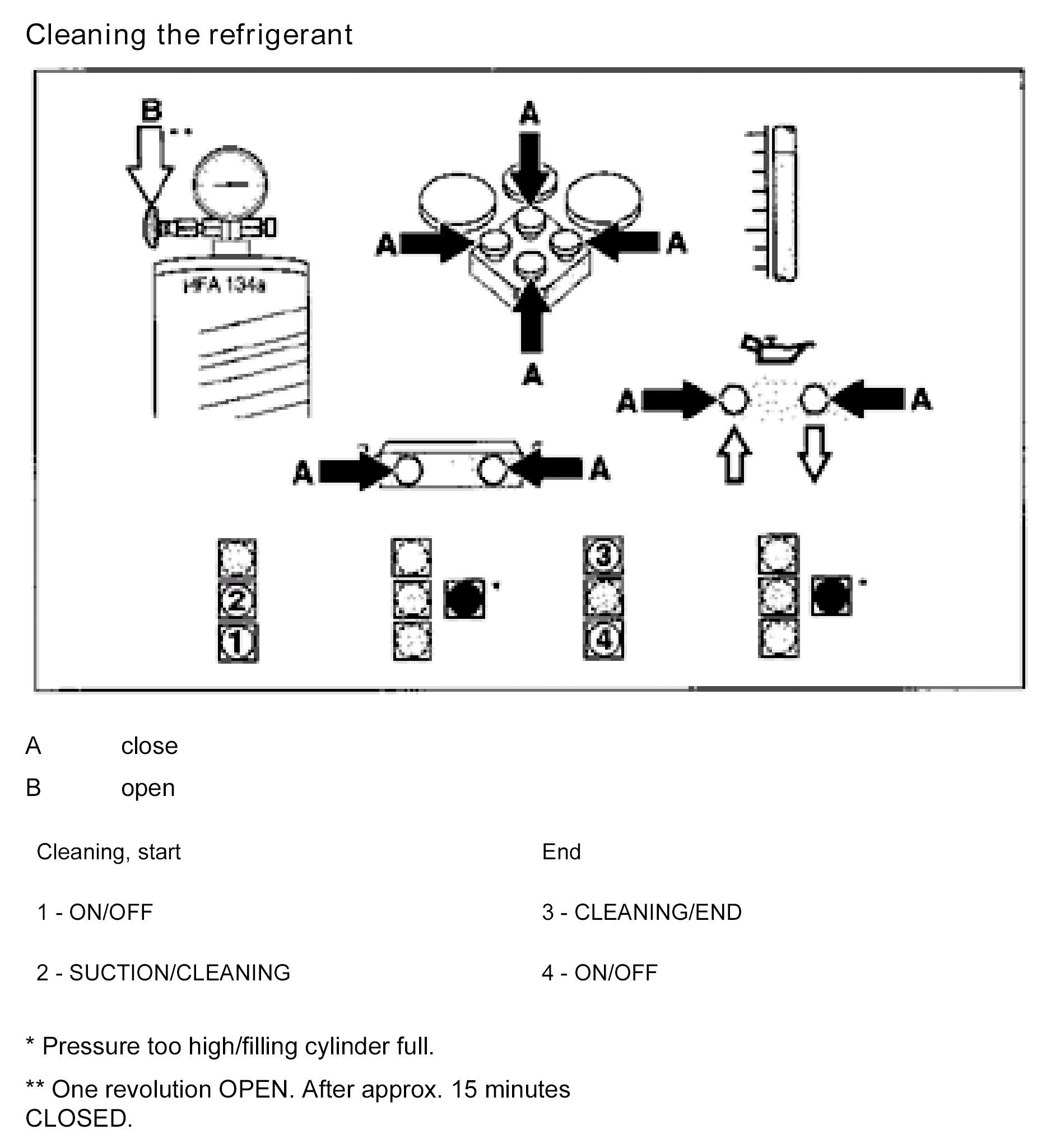 NOTE: In the event of insufficient refrigeration performance, remove the refrigerant by suction, top up with the stipulated quantity and check the system for leaks.