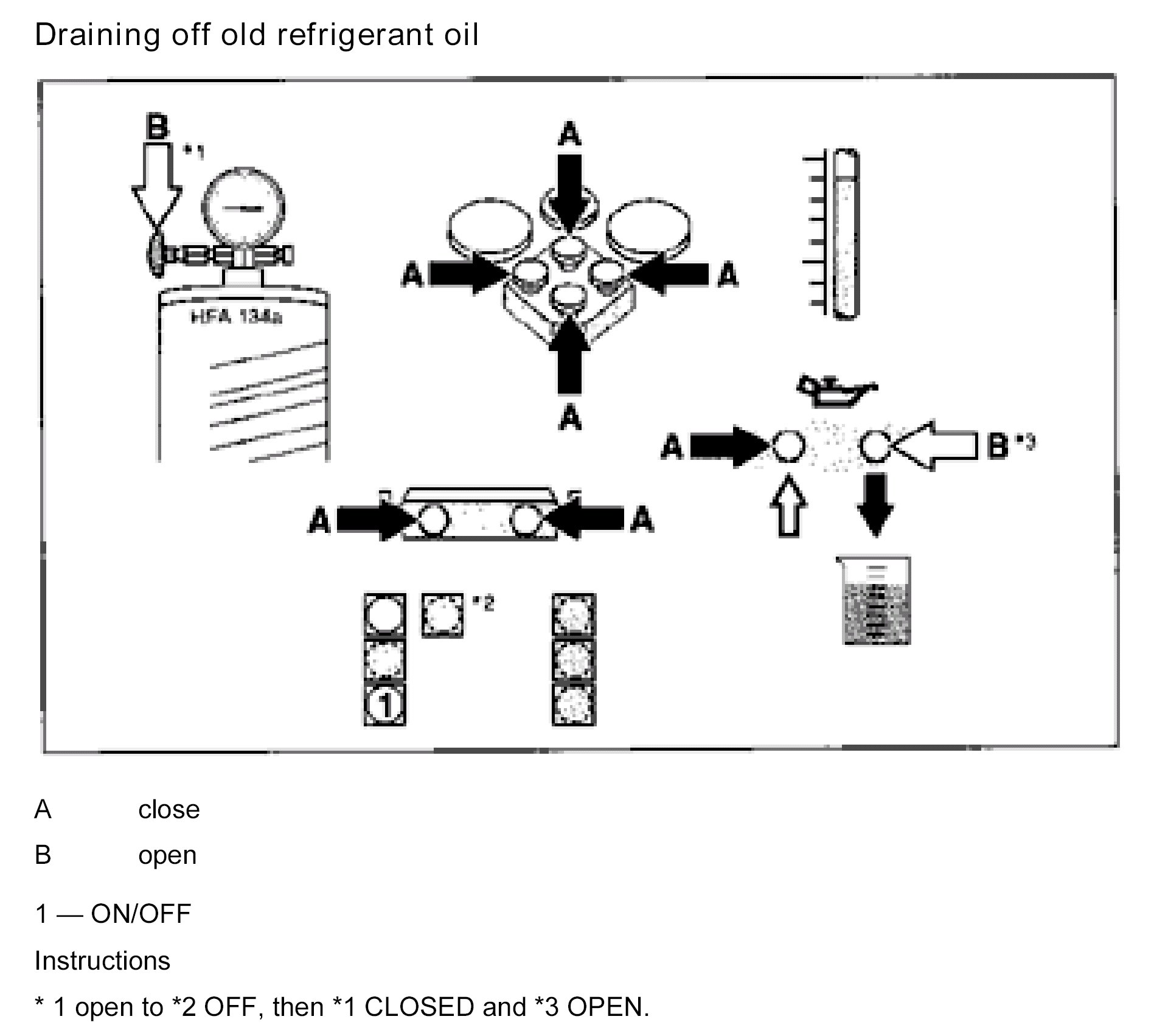 2. Determine the refrigerant oil quantity after the refrigerant has been removed by suction.
