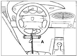 Clamp steering wheel in centre position with steering wheel holder (Figure 106_96). Use only steering wheel holders which do not project into the area of the airbag unit! If necessary, shorten the guide rod (A) at top (arrow).