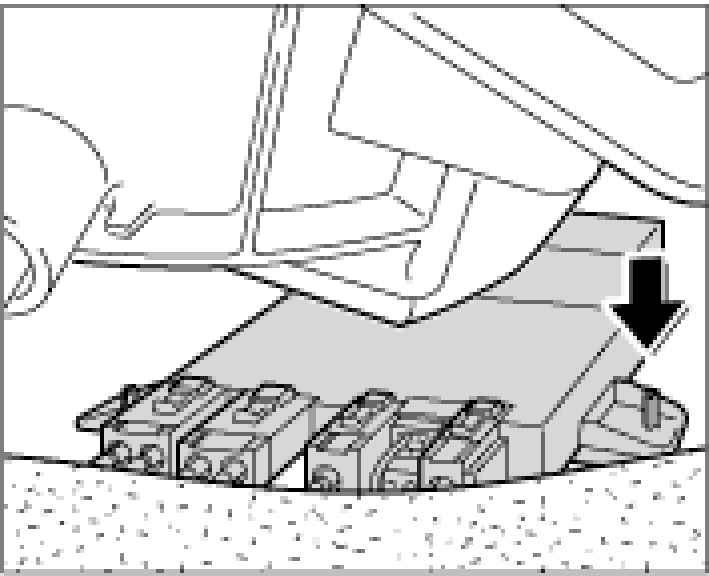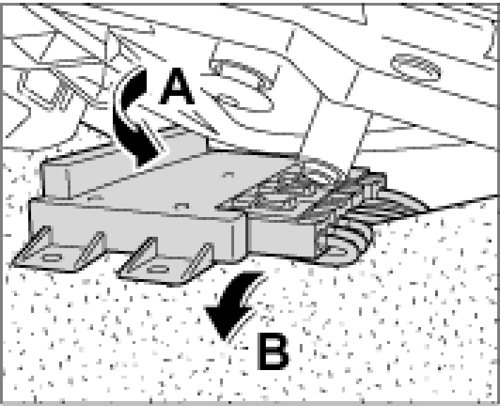 2. Push the control unit carefully over the interior carpet -B- and position it in the holder -A-.