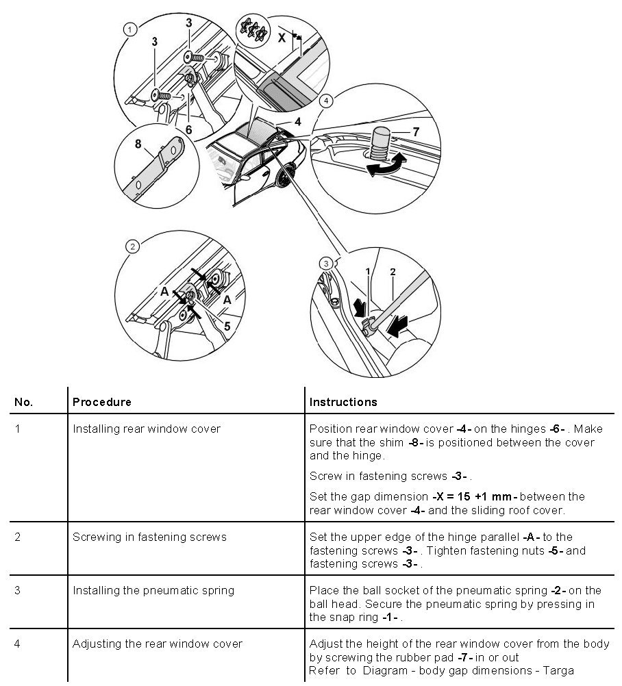 Removing And Installing Rear Window Cover - Targa