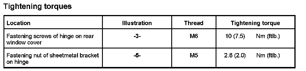 Tightening torques