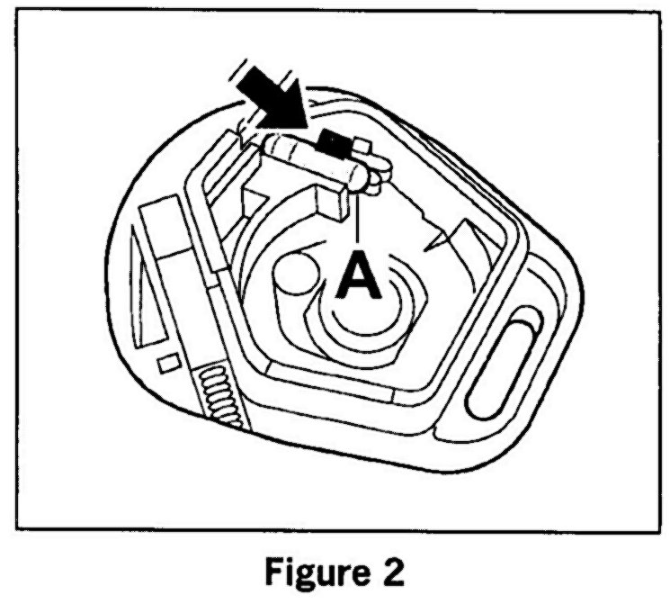 2.1 Insert transponder in lower part of key housing, Figure 4, item A and secure with adhesive.