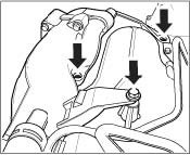 ^ Pay particular attention to the clearance between rear axle cross member, intake air distributor and oil container!