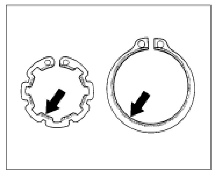 2. Install the Seeger circlip ring. The -slanted surfaceof the Seeger circlip ring faces upwards (to the fastening screw).