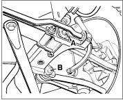 - After loosening the lock nut, turn eccentric -B- appropriately.