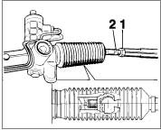 7. Then adjust toe at hexagon -2- of the track rod(s) after loosening the lock nut(s) -1-. The steering angle sensor must subsequently be calibrated by PSM!