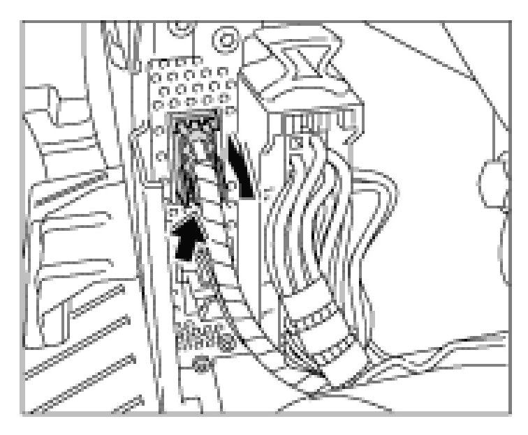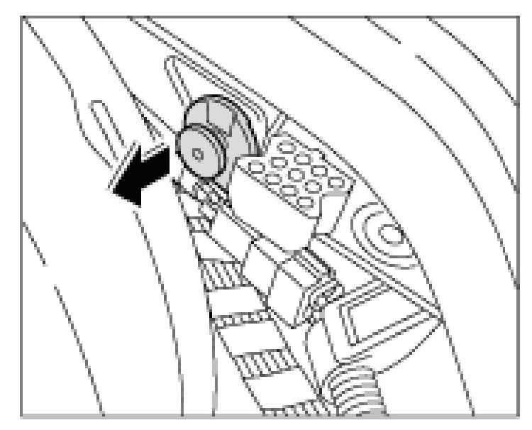 2. Close the secondary lock -arrow- and check for proper seating of the optical contacts.