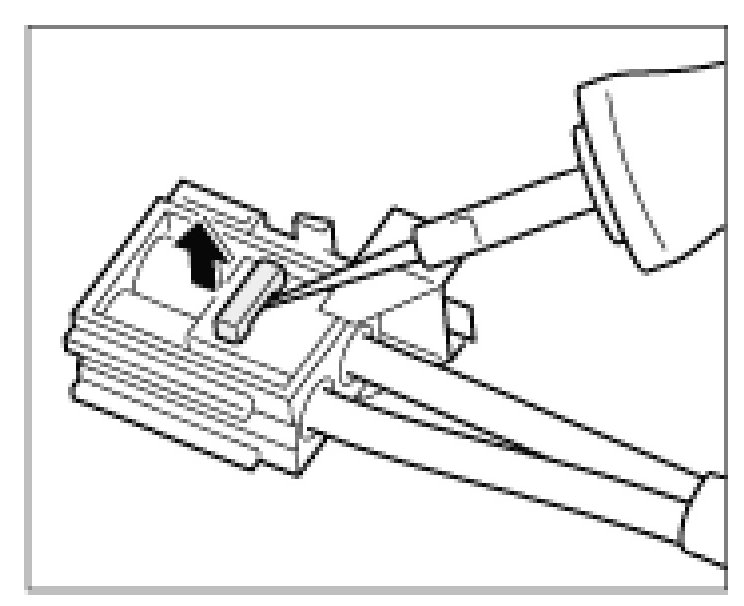 3. Position the unlocking tool at the contact lock of the optical waveguide module and raise the lock.