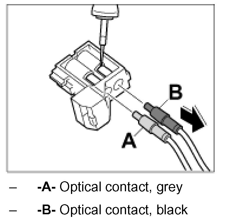 - The optical waveguide and the plug copnnections must not be brought into contact with liquids such as water, leakage fluids, preservers, anti-freeze fluids or cleaning agents. This may impair the function of the MOST system or even complete system failures. Even plug connectors with connected protective caps must not be brought into contact with the listed liquids.