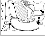 8. Tighten the front two fastening nuts and the fastening screw in the wheel well, all to 23 Nm (17 ft. lbs.).