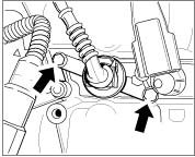 12. Remove the switch-over valve. To do so, disconnect the electric plug. Press the sheetmetal braces of the plug and pull the plug out at the same time. Then pull the switch-over valve out of the cylinder head.