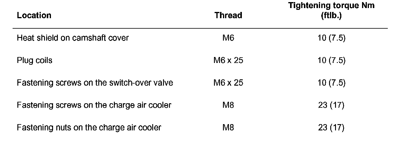 5. Install heat shield. Tighten the two fastening screws to 10 Nm (7.5 ft. lbs.).