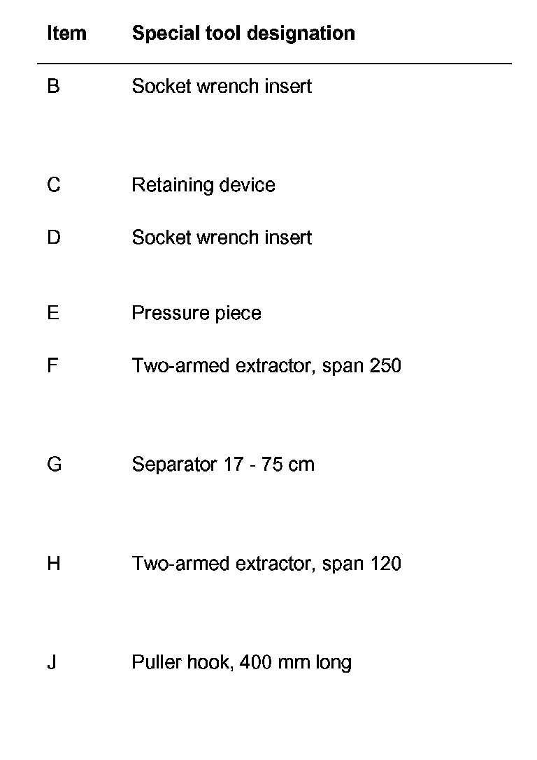 6. Remove loose gearwheel for reverse gear (no. 5 in overview) with needle-roller bearing (no. 7 in overview) from the output shaft using the puller. When doing so, also pull off the cylindrical-roller bearing (no. 3 in overview) and thrust plate (no. 4 in overview).