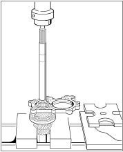 1. Clamp complete shaft into the vice with gear set and special tool socket wrench insert 9282.