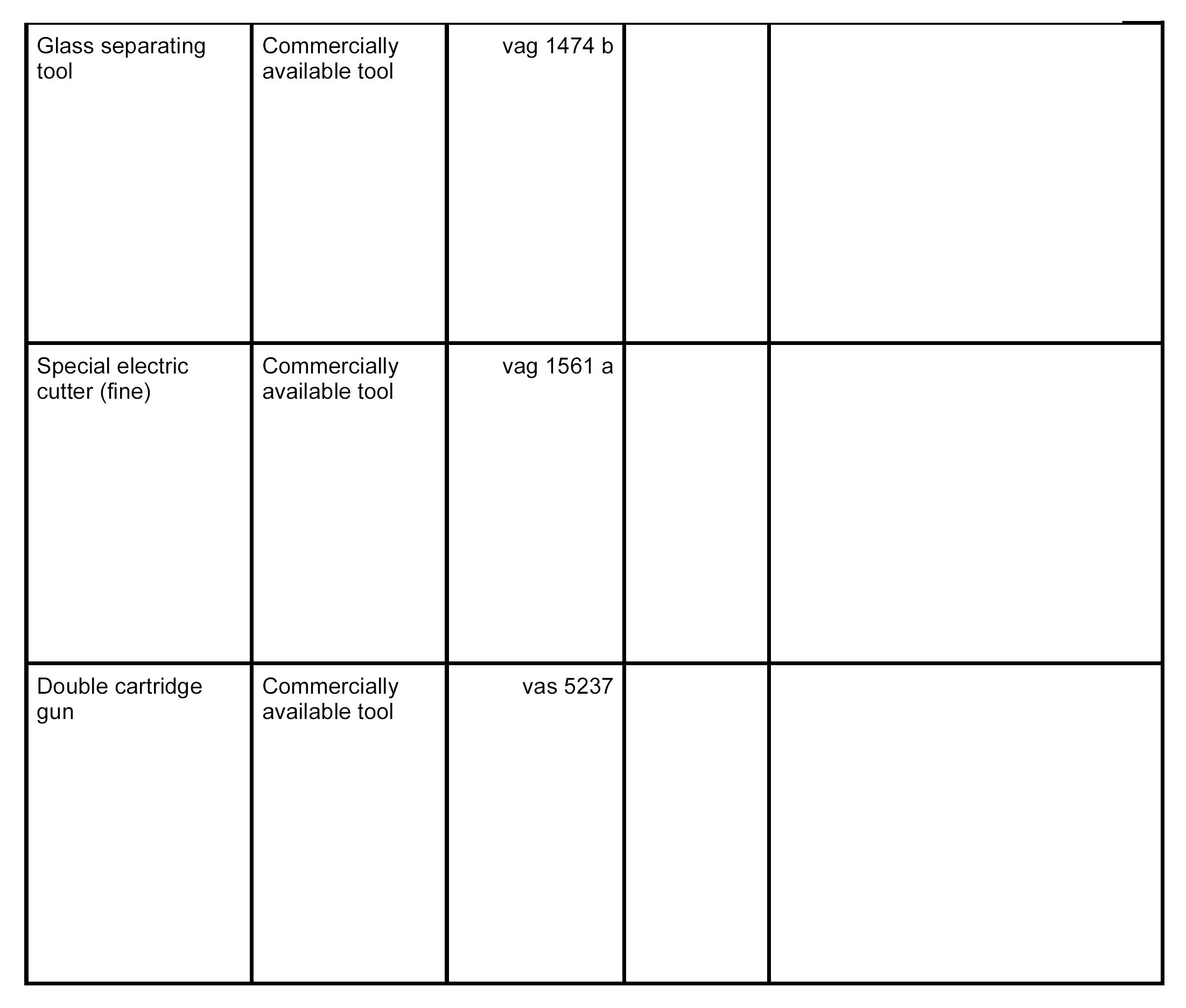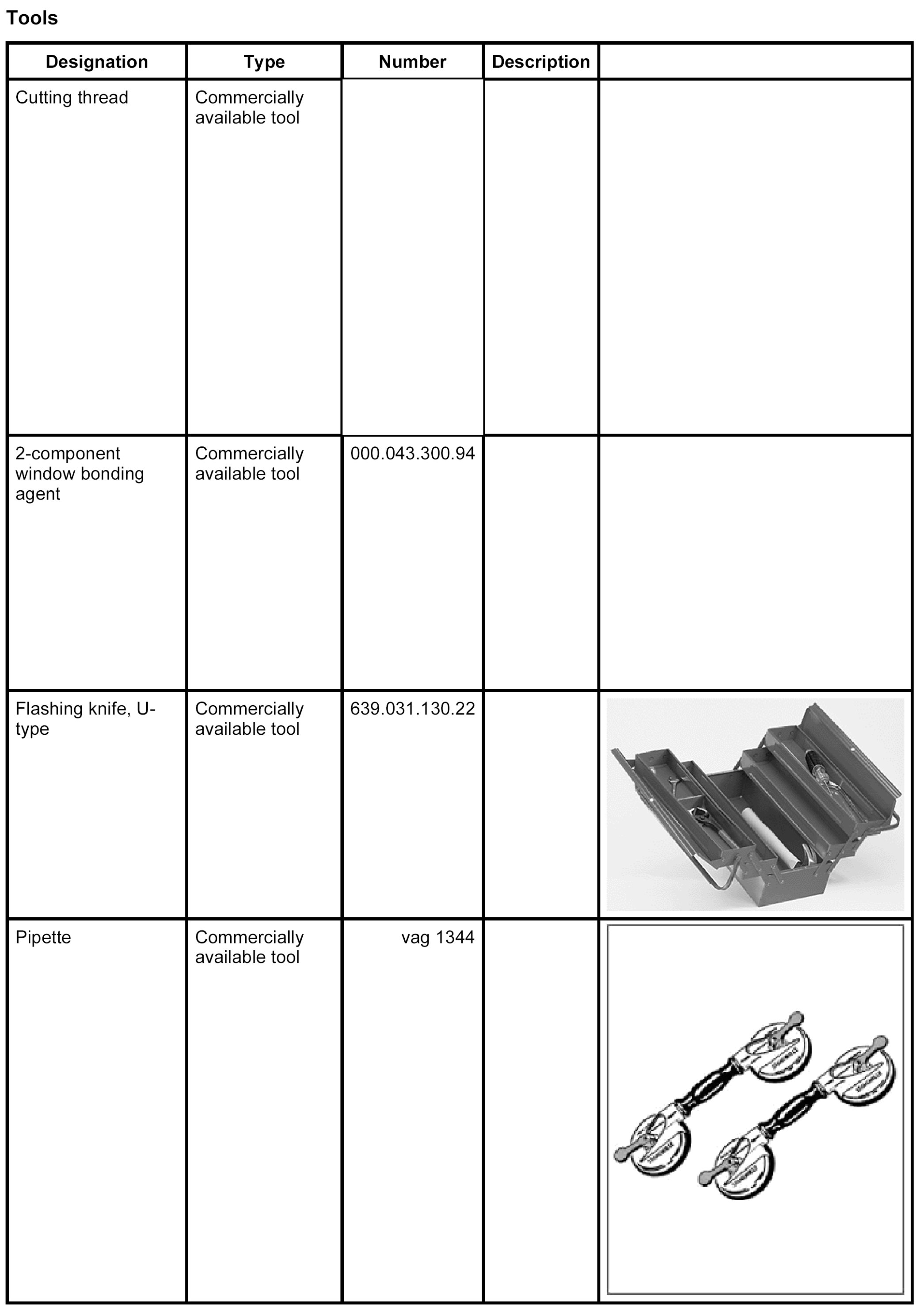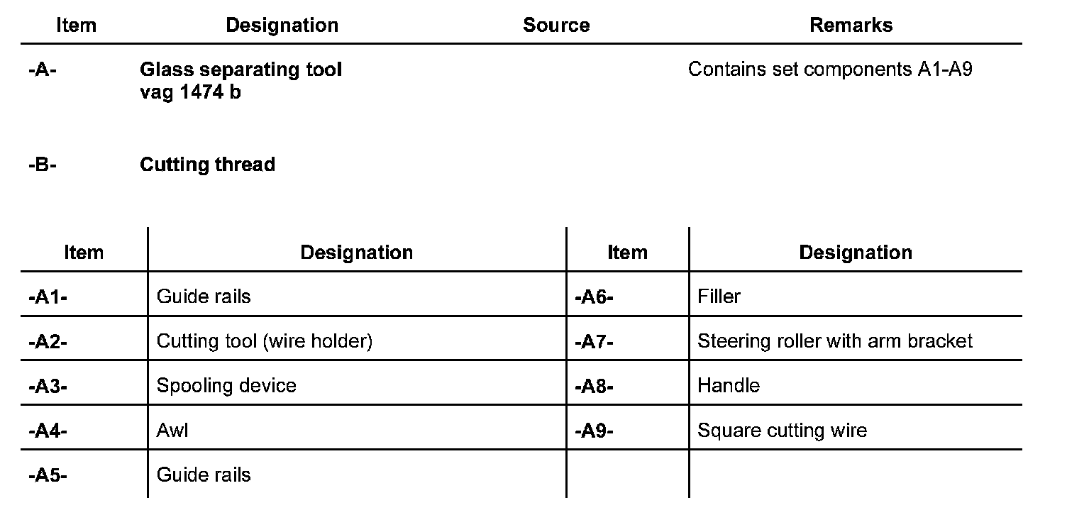The following tools and materials are required for removing and installing the windscreen with 2-component adhesive: