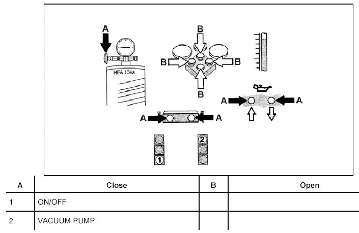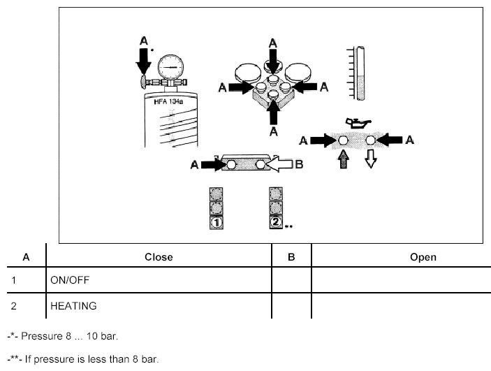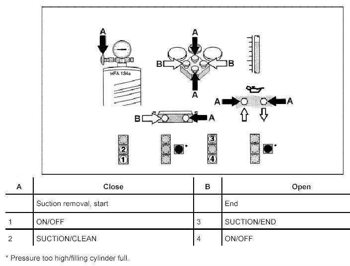 - After the refrigerant has been removed by suction and a component has been replaced, the oil quantity must be determined and topped up by the quantity remaining in the removed component.