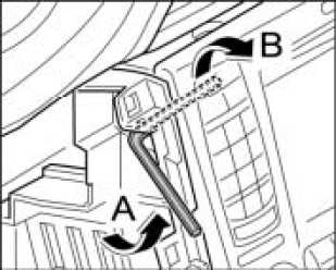 2. Insert a hexagon-socket wrench sideways into the screw connection of the PCM detent hooks.