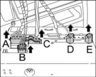 1. Push on the electrical plug connections for the display and operator control unit in the sequence -C, B, A- and the antenna amplifiers -D, E- until the plugs are felt to engage.