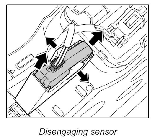 2. Lift the two retaining tabs aside and pull out the sensor.