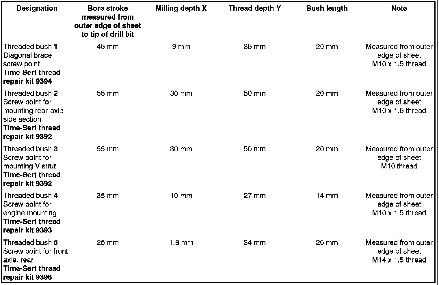 WM 518941 Repairing threaded bushes for suspension subframe installation