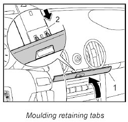 Remove moulding for centre of dashboard. Refer to Removing and installing dashboard moulding.