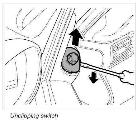2. Use a plastic spatula to carefully lever the switch for the rear-view mirror out of the mount on the door panel.